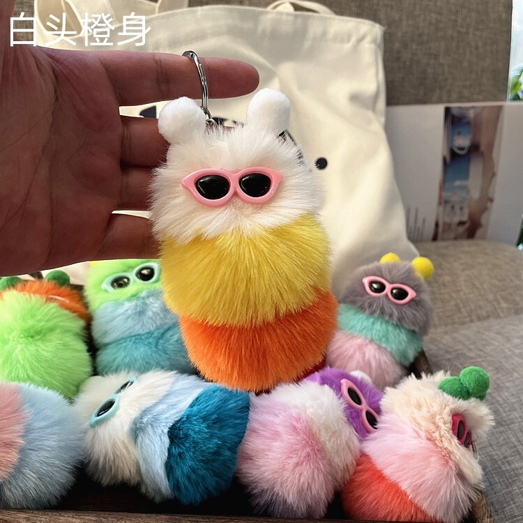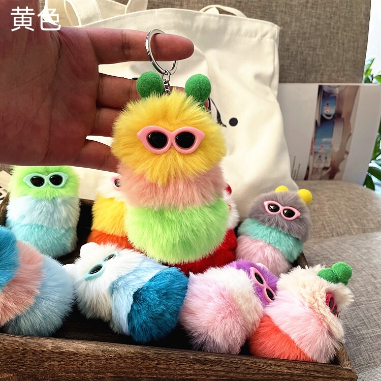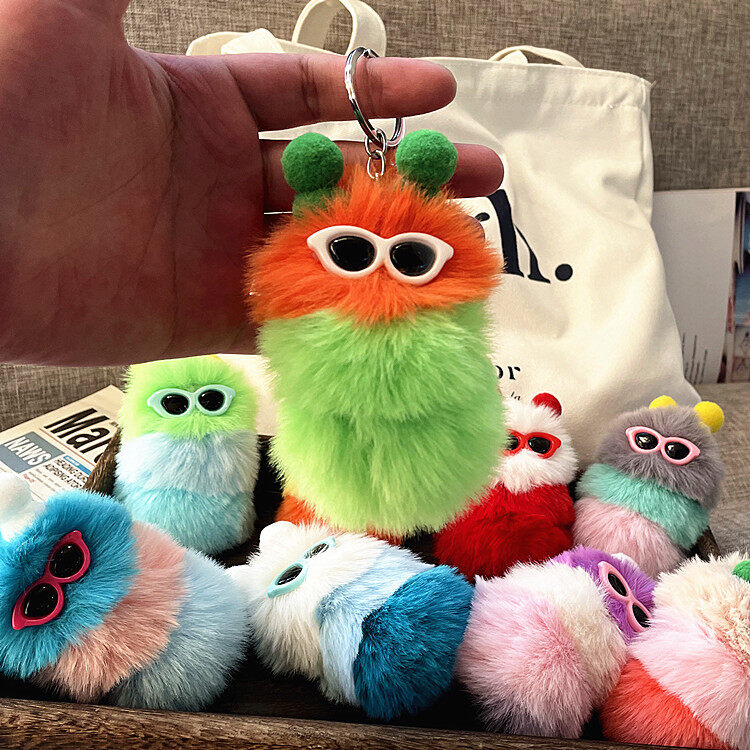 【Fashion-jewelry】Cartoon Cute Caterpillar Keychain Plush Ornament Rabbit Ball Ladie Bag Ornament Mini Plush Car Keychain Lanyard Jewelry Gift