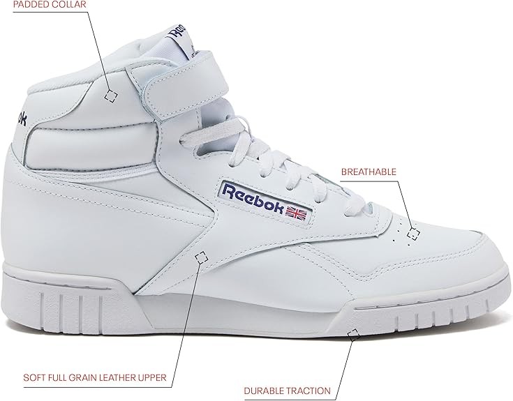 • MULTI PURPOSE - Whether you're looking for casual men's basketball shoes or a really cool old school mens high top, the Reebok EX-O-FIT is your new go-to sneaker. More than just a mens hightop, it's a way of life. Heel height 1 1/10inch